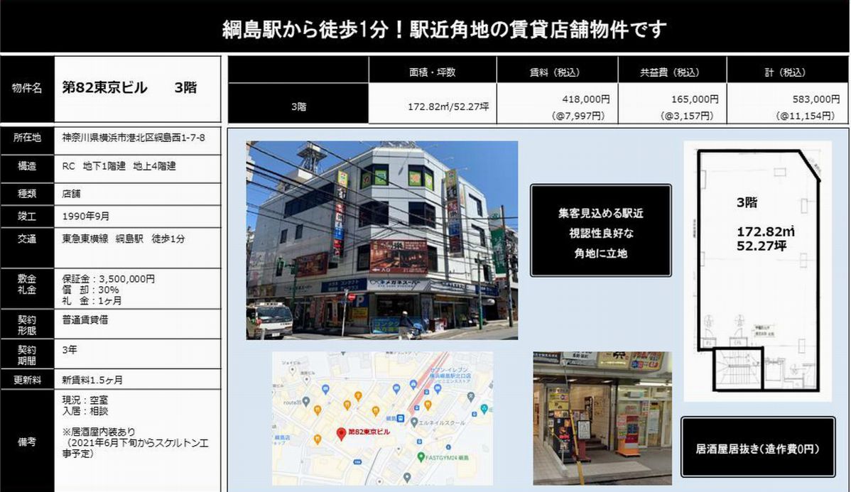トップページ > 物件検索 > 横浜市港北区 の貸事務所・貸店舗 > 綱島の貸事務所・貸店舗 > 横浜市港北区綱島西1-7-8 第82東京ビル