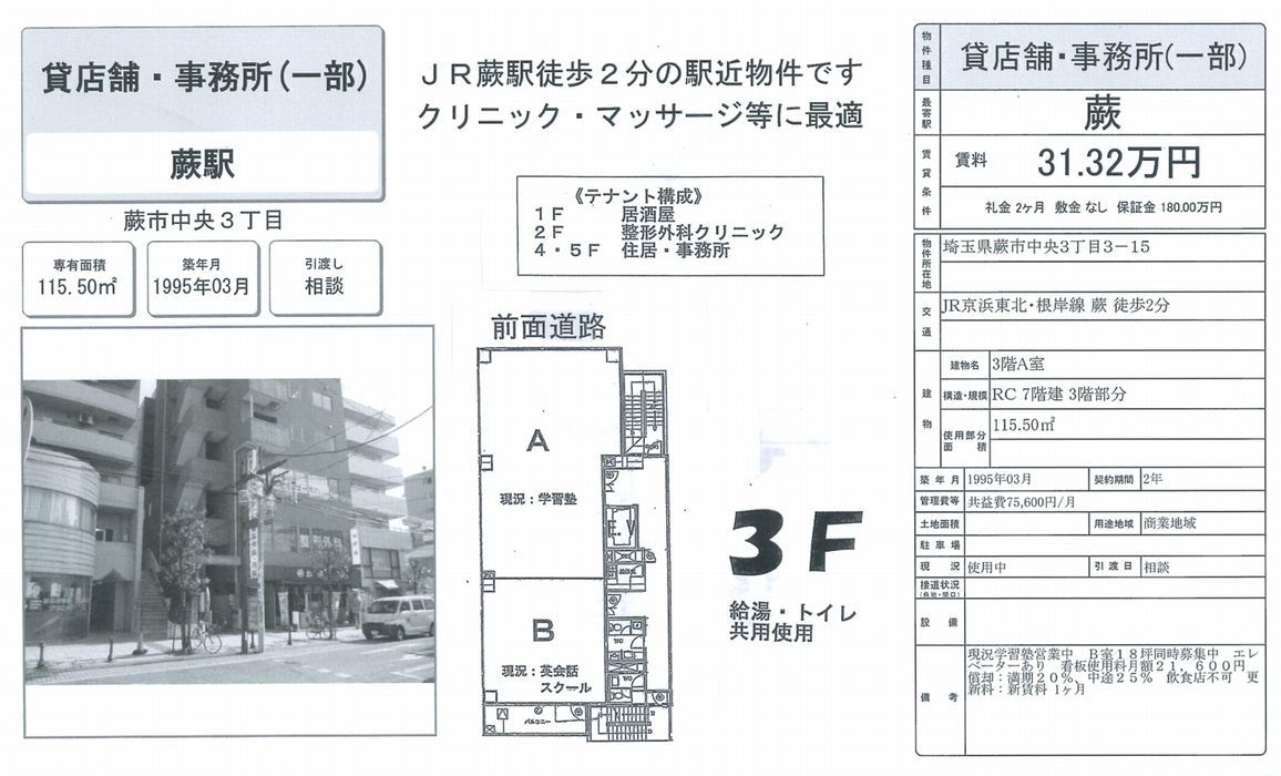 蕨市中央3-3-15 蕨駅 貸事務所 詳細データ