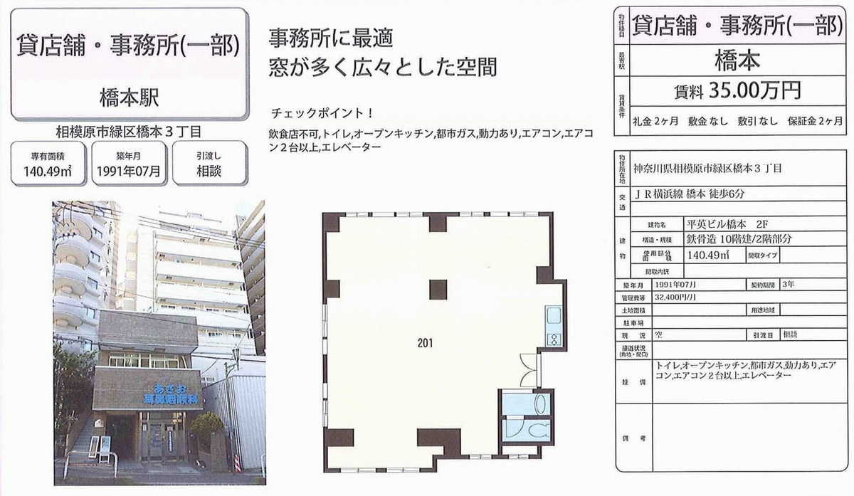 トップページ > 物件検索 > 神奈川県相模原市 の貸事務所・貸店舗 > 橋本の貸事務所・貸店舗 > 相模原市緑区橋本3-20-14 平英ビル橋本