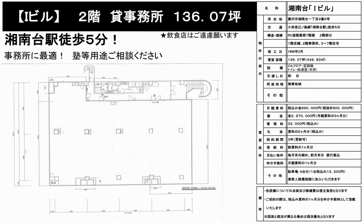 トップページ > 物件検索 > 神奈川県藤沢市 の貸事務所・貸店舗 > 湘南台の貸事務所・貸店舗 > 藤沢市湘南台1-9-6 Iビル