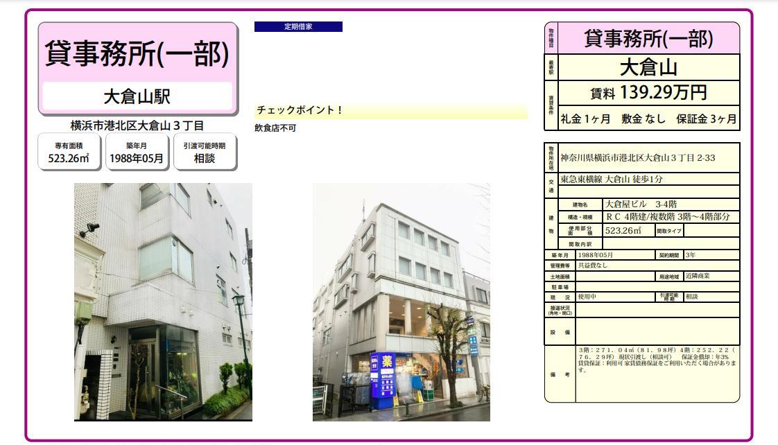 横浜市港北区大倉山3-2-33 大倉屋ビル3-4階 詳細データ