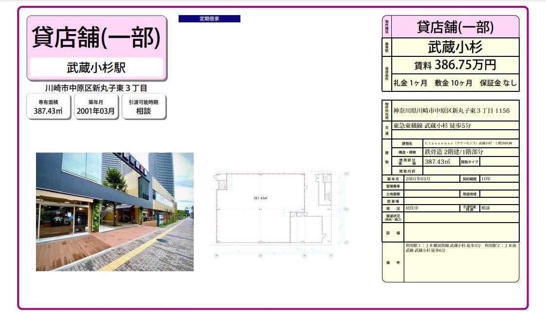 トップページ > 物件検索 > 川崎市中原区 の貸事務所・貸店舗 > 武蔵小杉の貸事務所・貸店舗 > 川崎市中原区新丸子東3-1156 Classense(クラッセンス)武蔵小杉