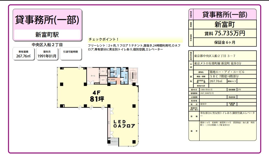 中央区入船2-3-7 築地エー・アイ・ユービル 詳細データ