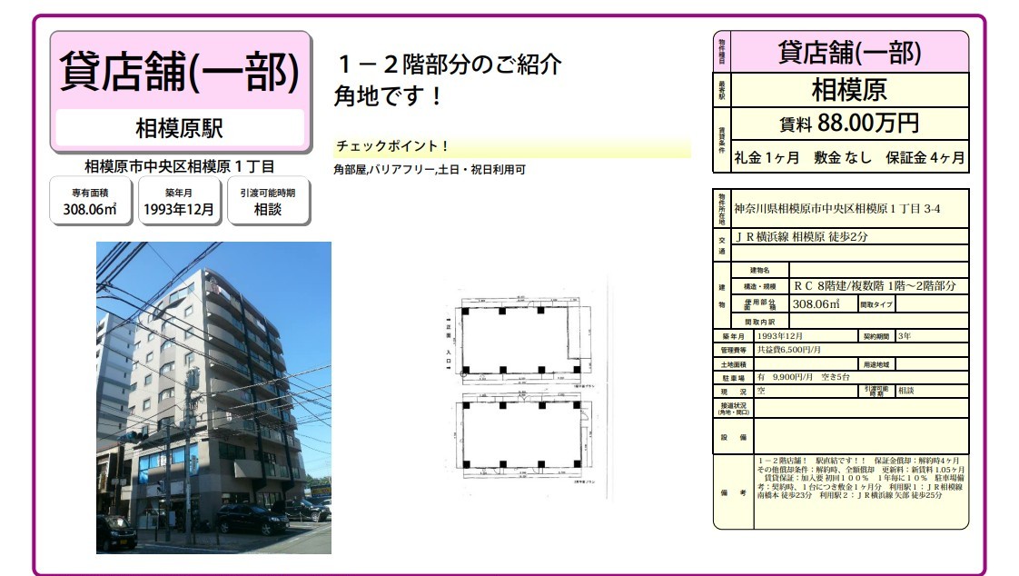 相模原市中央区相模原1-3-4 相模原 事務所 詳細データ