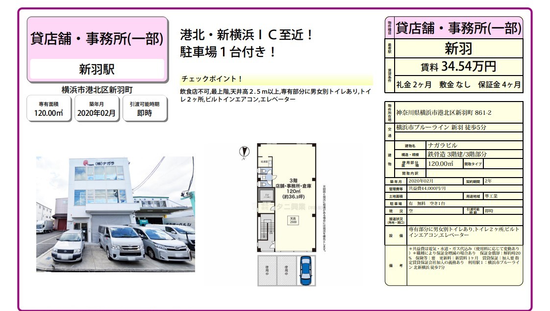 横浜市港北区新羽町861-2 ナガラビル 詳細データ