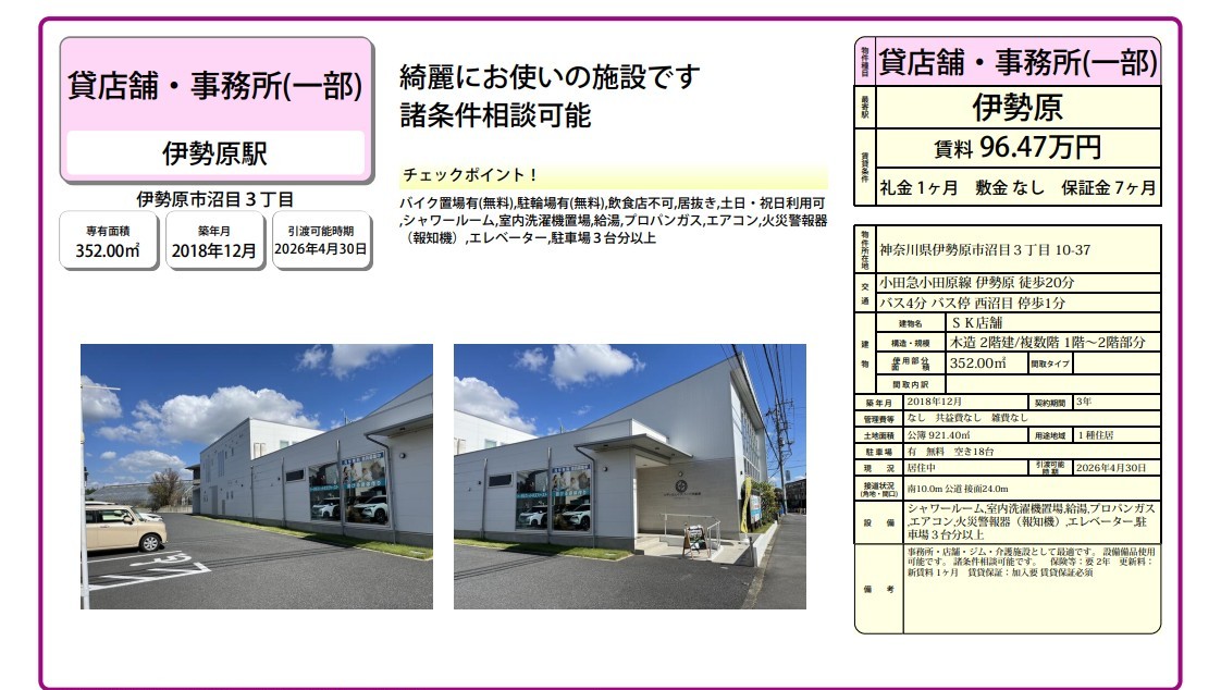 伊勢原市沼目3-10-37 SK店舗 詳細データ