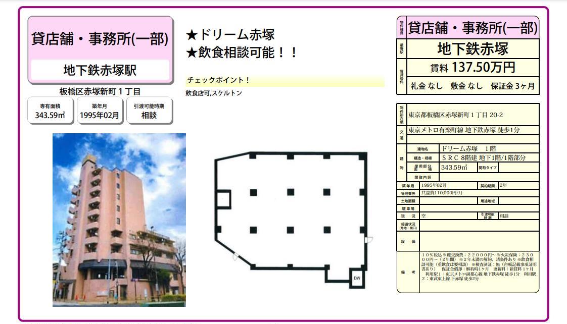 | 備考 | 飲食店可スケルトン 条件交渉ご相談ください。 |
