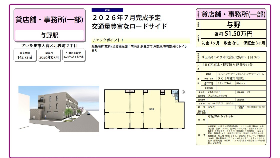 | 備考 | 飲食店可角部屋 条件交渉ご相談ください。 |