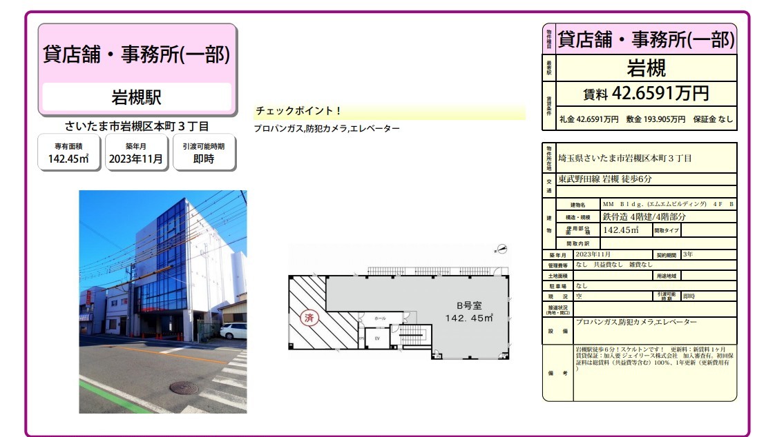 プロパンガス防犯カメラエレベーター 岩槻駅徒歩6分!スケルトンです! 礼金:42.6591万円 敷金:193.905万円